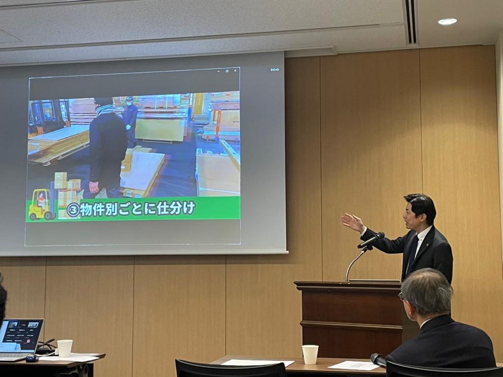 弊社社長の原田は、第5セッションにて「物流データの標準化による効率化の可能性 ~建材物流コードを用いた新しい物流の夜明け~」と題し、約60分間の講演を行いました。講演の中では、実際の現場写真(物件別仕分けの様子など)を交えながら、アナログな管理から脱却し、デジタルデータ(建材物流コード)を活用することで、いかに現場の負担を軽減し、生産性を向上させられるかを詳しく解説いたしました。