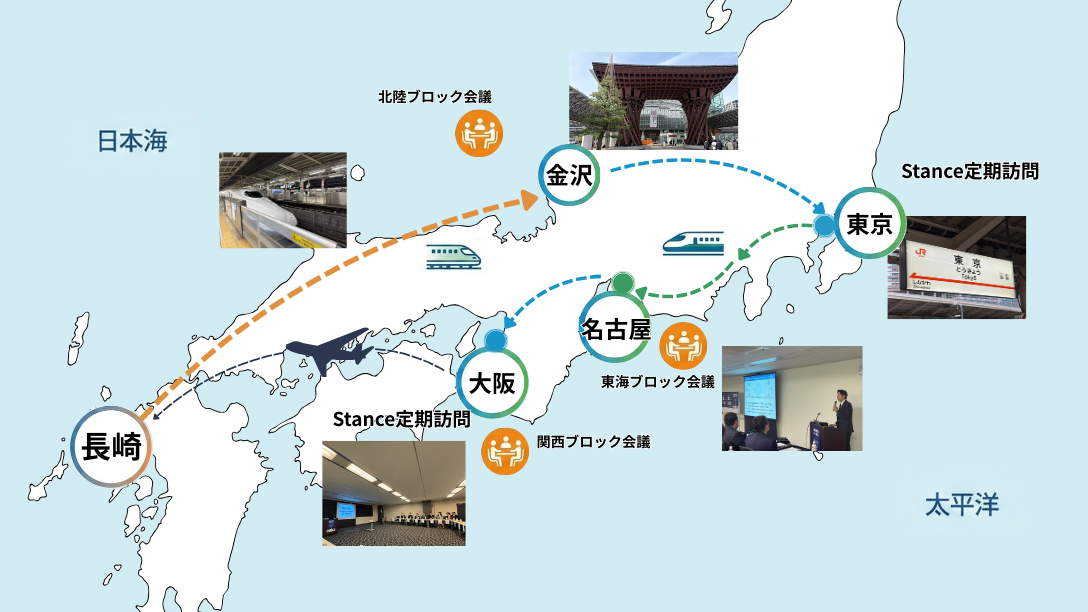 今回の旅の目的は、住活協ブロック会議参加・Stance導入企業様への定期訪問。