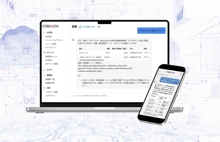 膨大な建材カタログや法規制、施工の手順など、業界特有の複雑な情報をAIが即座に検索して回答してくれます。