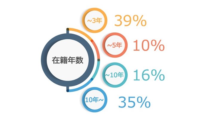 LTUグループは20代が最も多い、非常に若い力が集まる建設企業です。その一方で各年代がバランスよく在籍しており、世代間に極端な偏りはありません。計画的な採用と離職率の低さにより、「相談できる先輩がいない」「世代が離れすぎて話しにくい」といった問題がほとんど起きない職場になってます。